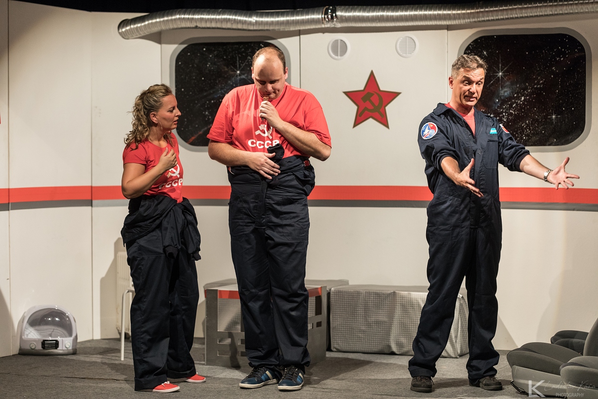A je to tady! Fotky ze sobotního představení… Svou premiéru si tentokrát odbyla i druhá posádka. Hvězdná konstalace příznivá, diváci vynikající, atmosféra výborná. Dubnová mise na Mars splněna! Už se těšíme na květen! Za skvělé fotečky děkujeme fotografu Ladislavu Káňovi